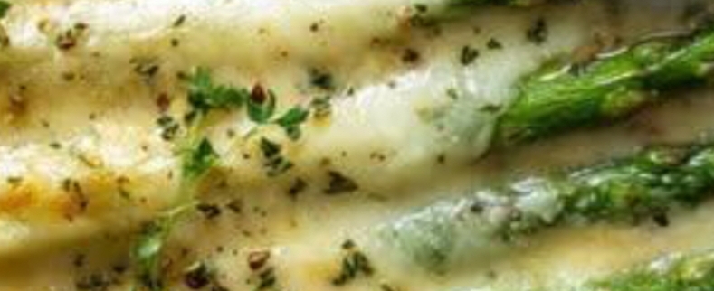 Heat the oven to 400 degrees. – Wash and trim the asparagus, then grease a 9 x 13 baking tray and place them in it. In a skillet, melt the butter over medium heat, then add the soft cheese, heavy whipping cream, chicken broth, garlic powder, paprika, Italian seasoning, salt, and pepper. Stirring constantly until ingredients are well blended.