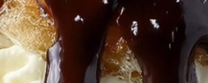 • Spoon the chocolate glaze over the top of each filled pastry, allowing it to drip down the sides.