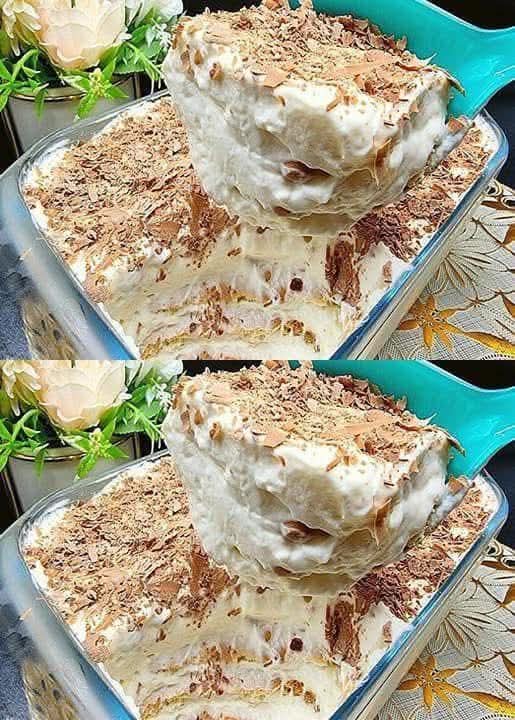 - Assembling the dessert:First, quickly dip the cookies into milk.Then, line the bottom of a glass dish with the soaked cookies and spread a layer of cream on top.After that, repeat the process, alternating layers of cookies and cream, until all ingredients are used. Make sure the final layer is cream.Lastly, sprinkle grated chocolate (using the side of the grater with thicker holes) over the top.To finish, place the dish in the refrigerator and chill for a few hours, until the dessert is cold and set.The final result is a creamy and delicious dessert made with simple, everyday ingredients.