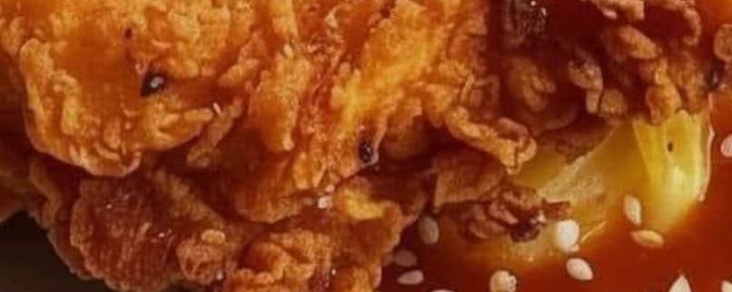 This dish looks like extra-crispy fried chicken breast served over creamy noodles with a sweet-savory glaze (Asian-inspired). Here’s a restaurant-style recipe to match the photo 👇