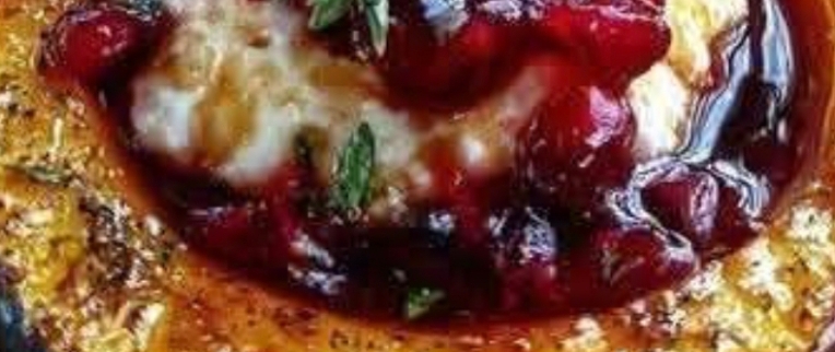 - Once cooled slightly, top each squash half with creamy goat cheese and a spoonful of cranberry sauce or compote.