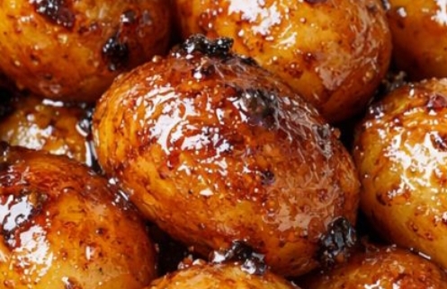 Finished glazed potatoes with parsley and flaky salt