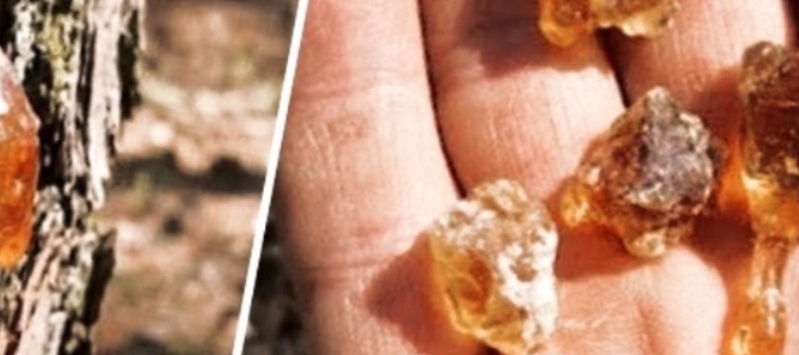 Natural resin oozing from the bark of a tree—a golden, amber-like substance formed when the tree protects itself from injury, pests, or environmental stress. This sticky, translucent material has been valued for thousands of years in medicine, cosmetics, incense, and even food preservation.