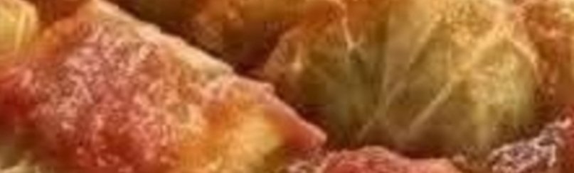 - Place some cabbage leaves on the bottom of a deep 9″ x 13″ baking dish or roasting pan. Taking one leaf at a time, distribute about ¼ cup of ground beef mixture on top and wrap up (fold in sides and roll up, placing in prepared dish, seam side down. Continue with remaining ground beef mixture/leaves.