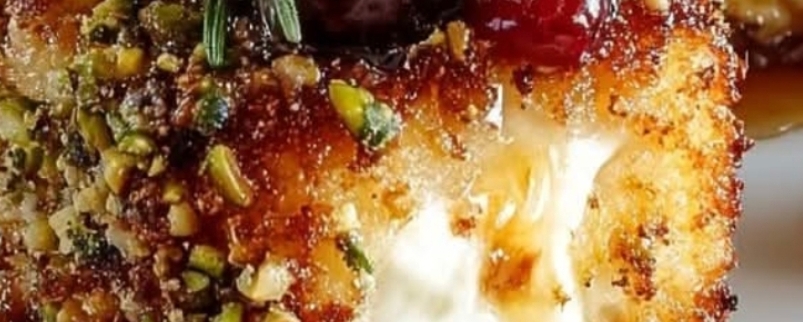 Pistachio-Crusted Brie Bites with Cranberry Honey Glaze