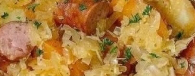 This hearty and comforting Sausage and Sauerkraut Skillet is a classic dish that combines smoky sausages, tangy sauerkraut, and tender potatoes. It’s an easy one-pan recipe perfect for a cozy dinner or a flavorful addition to any family meal.