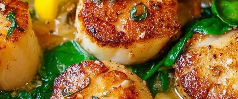 Introduction: This delicious dish features perfectly seared scallops, complemented by the refreshing zest of lemon and the earthy taste of spinach. The combination of these ingredients creates a balanced, elegant, and quick seafood meal that is both light and flavorful. Ideal for a weeknight dinner or a special occasion, these scallops are cooked in a buttery sauce with a touch of garlic, making them irresistible.
