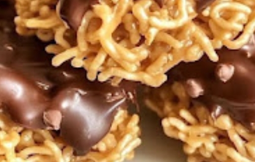 Add the chow mein noodles and salted peanuts to the melted mixture, stirring until everything is well coated.