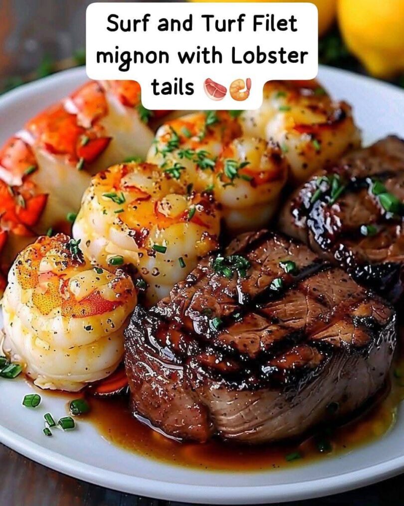 Serve each filet mignon with a lobster tail half (or both halves if it’s a large portion).