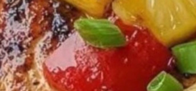 - Top each chicken breast with pineapple chunks, bell pepper slices, carrot slices, and zucchini slices.