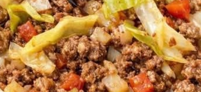 - In a slow cooker, combine the beef, onions, diced tomatoes, and cabbage.