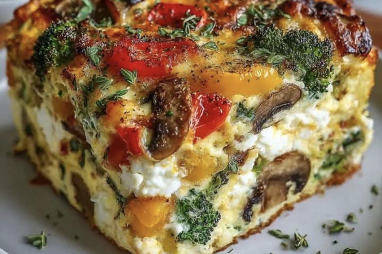 This hearty baked egg casserole is fluffy, colorful, and loaded with vegetables. Perfect for breakfast, brunch, or a light dinner, it’s easy to prepare, nourishing, and great for meal prep. Serve it warm or at room temperature with a simple salad or fresh tomatoes.